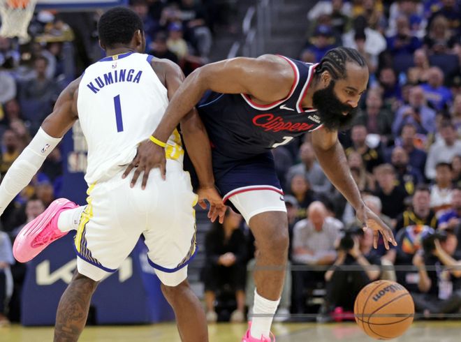 從快船常規(guī)賽核心哈登說起。哈登休賽期年滿36歲的情況下,新賽季開打后,他是快船表現(xiàn)最好的球員,沒有之一。除了揭幕戰(zhàn)只拿到15分之外,之后5場比賽連續(xù)得分20+,場均貢獻23分5籃板9助攻,兩項命中率是48%+39%。只用一個數(shù)據(jù)就能體現(xiàn)哈登的價值,本賽季哈登在場時,快船百回合贏對手3.2分;當(dāng)他不在場時,快船百回合輸對手12分,On-Off值是+15.2。這支快船到底有多糟糕?哈登本賽季年薪3920萬,只拿了一份工資,卻要干三份活。第一,得分。快船賽季首勝,哈登轟30+7+7,帶領(lǐng)替補一波流打花對面,哈登正負(fù)值+22。
