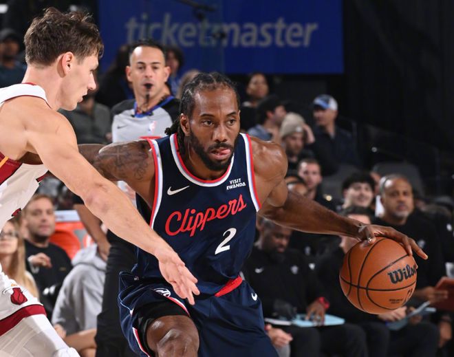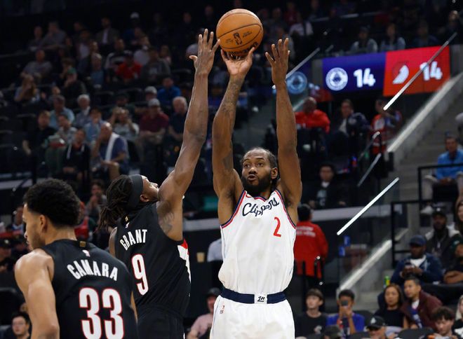 什么意思,又到了猜謎環節?本賽季倫納德出戰的6場比賽,場均24.3分5.7籃板3.5助攻,三項命中率是50%+40%+96%,確實非常漂亮了。但進階數據很難看:倫納德在場時,快船百回合輸對手10.7分;他不在場時,快船百回合贏對手21.4分;On-Off值是-32.1!造成這種局面的原因有兩個,第一,泰倫盧本質上讓哈登+保羅無縫銜接填滿48分鐘,由于比爾表現低于預期,泰倫盧讓小卡帶第二陣容,高階效率被拖下水。第二,小卡在四號位置上,對抗吃緊(他減重不少,是為了緩解膝蓋壓力),而本賽季,小卡減少了突破,大部分以投射為主。