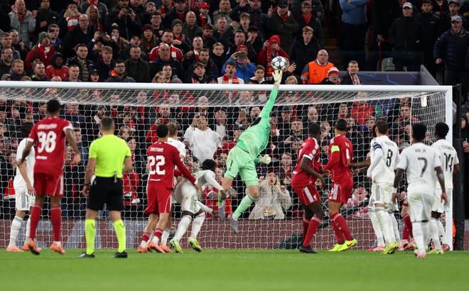 第23分鐘,維尼修斯直接放倒了前插的布拉德利,吃到黃牌!送給了利物浦一個位置非常好的定位球,索博斯洛伊將球送入禁區,范戴克頭球偏出。幾分鐘后,利物浦卷土重來,維爾茨橫傳中路,索博斯洛伊在點球點附近的勁射,被出擊的庫爾圖瓦神奇撲出!皇馬逃過一劫。